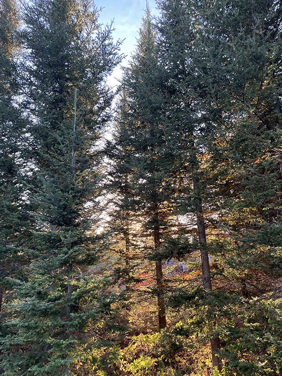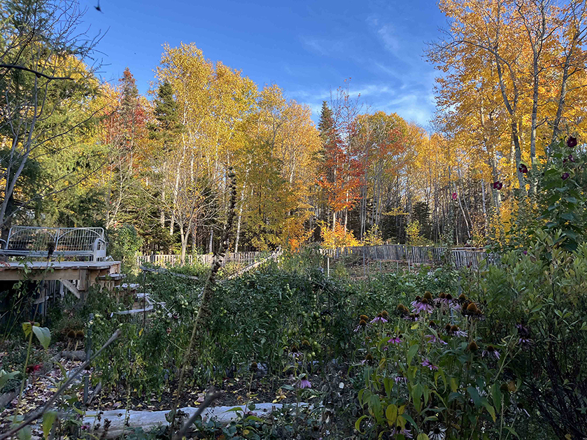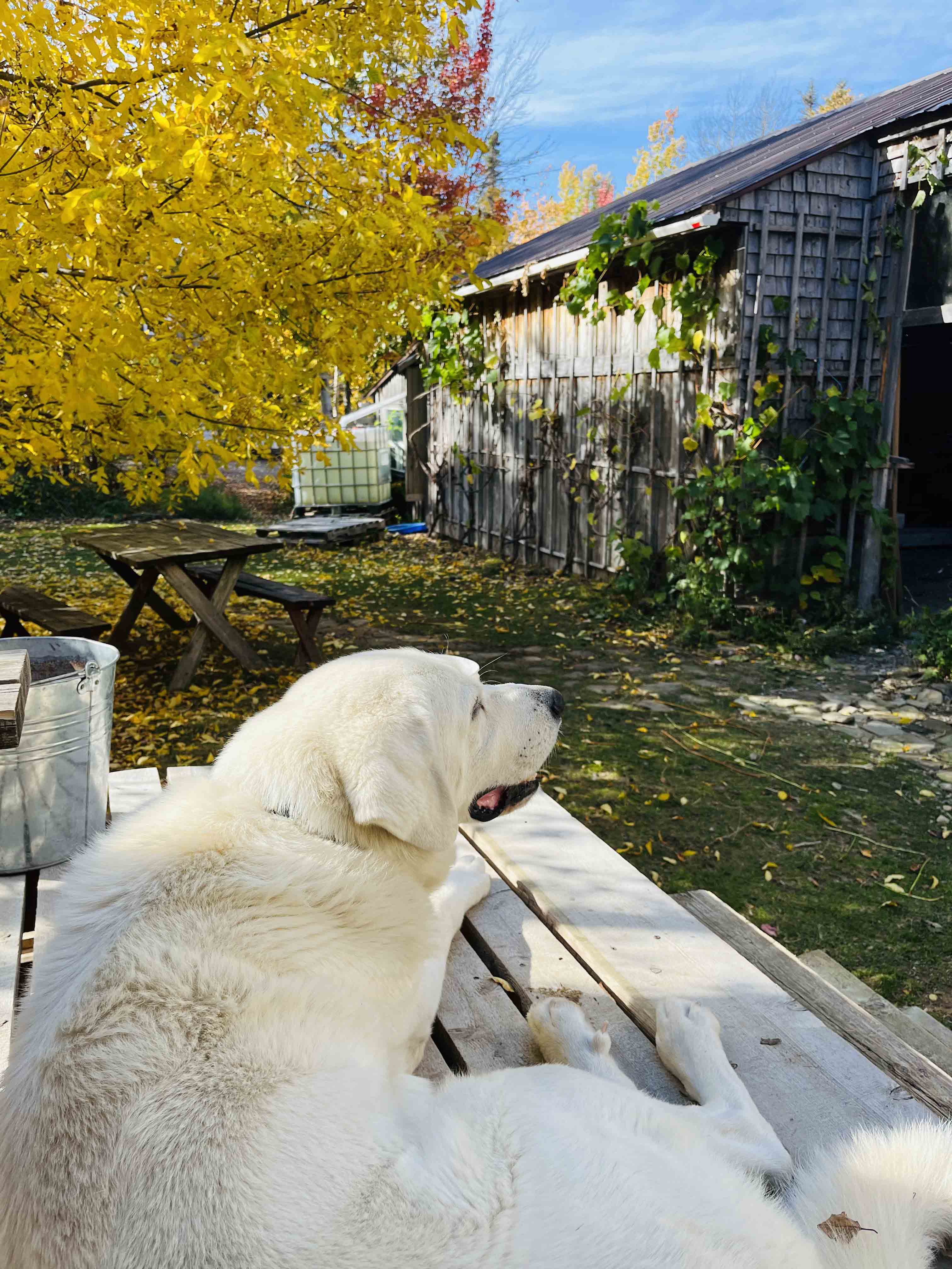Nous nous installons sur la terrasse, à côté de la maison en cèdre blanc. Il fait vraiment chaud. Et pour autant, voilà, les feuilles sont presque toutes au sol. Il paraît que le climat a trois semaines d’avance sur ses habitudes.