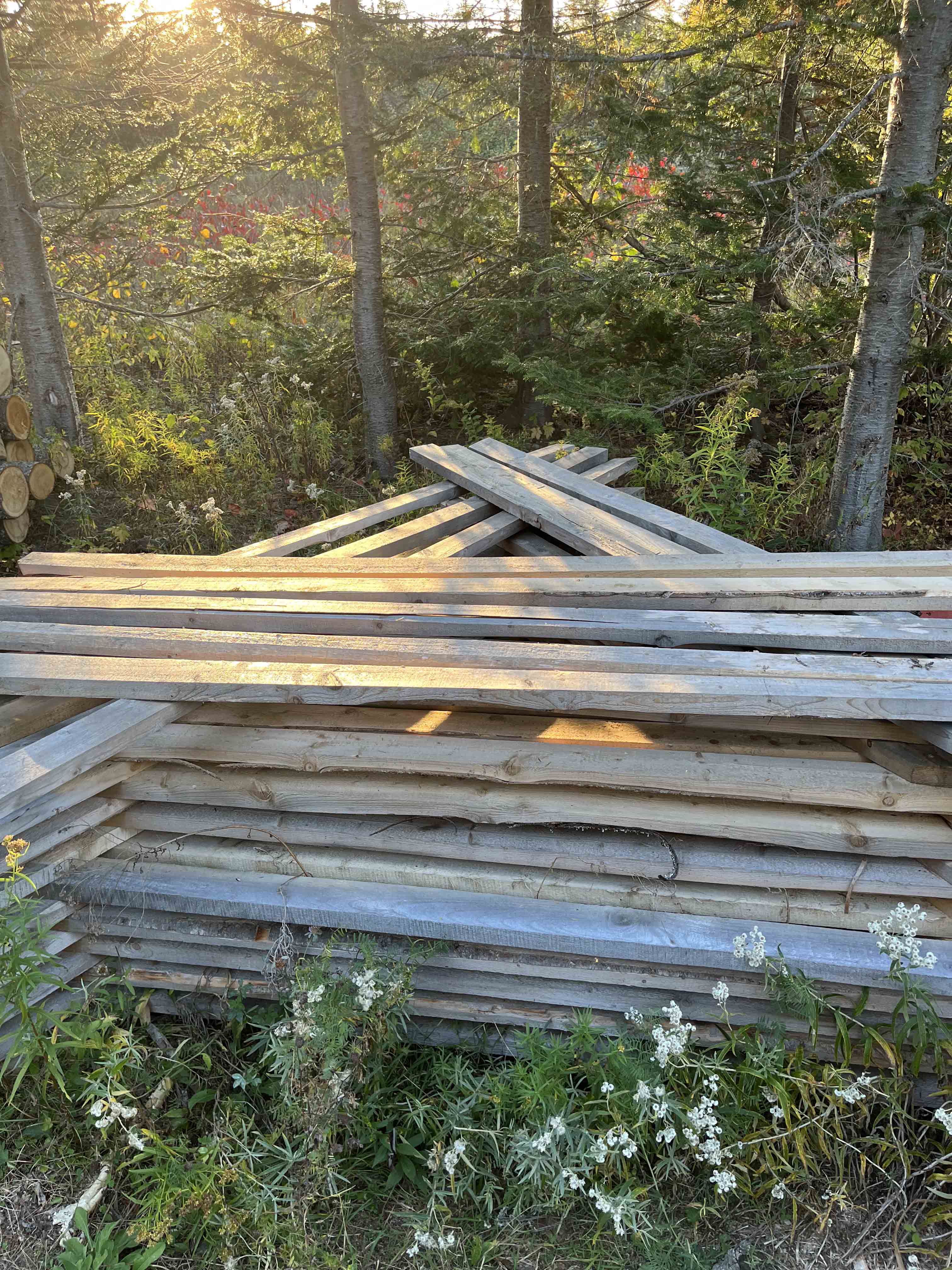 Avant de commencer à construire, Catherine et Gérard ont trouvé du travail. « J’ai été ouvrier agricole, j’ai fait du fromage, j’ai travaillé pour un groupement forestier. Catherine travaillait en tant que graphiste indépendante, surveillait des examens, prenait tout ce qui passait en même temps qu’on cherchait un espace pour construire. » Gérard finit par rencontrer un gars – une histoire de champignons dont j’ai oublié la teneur – qui lui parle d’ici. C’est à sa sœur et ce n’est pas à vendre. Ils viennent voir quand même. Marchent. Et ce qui n’était pas à vendre finit par se vendre. « On a beaucoup marché, avec une boussole. On mettait des petits flags là où on se sentait bien. C’était toujours au même endroit, là où nous sommes. On n’avait pas le droit de construire à plus de 100 pieds du chemin. Soit un peu plus de 30 mètres. Mais moi, je voulais m’installer là où je voulais. Le règlement municipal a changé et on a construit ici, après avoir bûché. » Bûcher, c’est abattre et débarder du bois, pour le sciage et pour le chauffage. « On a fait faire une base en béton, à 1,50 mètre du sol, pour le gel. L’électricité est enterrée pour qu’il n’y ait pas de problème au cas où un arbre tombe. Un gars a commencé le travail et nous on faisait les allers-retours depuis Matapedia. On a fini par vendre la maison où on était et on a loué une chambre pour un an dans une auberge de jeunesse. En 2006, on a créé Gaspésie Sauvage, notre compagnie. La première année, on n’avait pas trop de travail. Alors on a profité de ce temps pour construire un canot dans lequel mettre deux adultes, trois enfants, un chien et un pique-nique. »