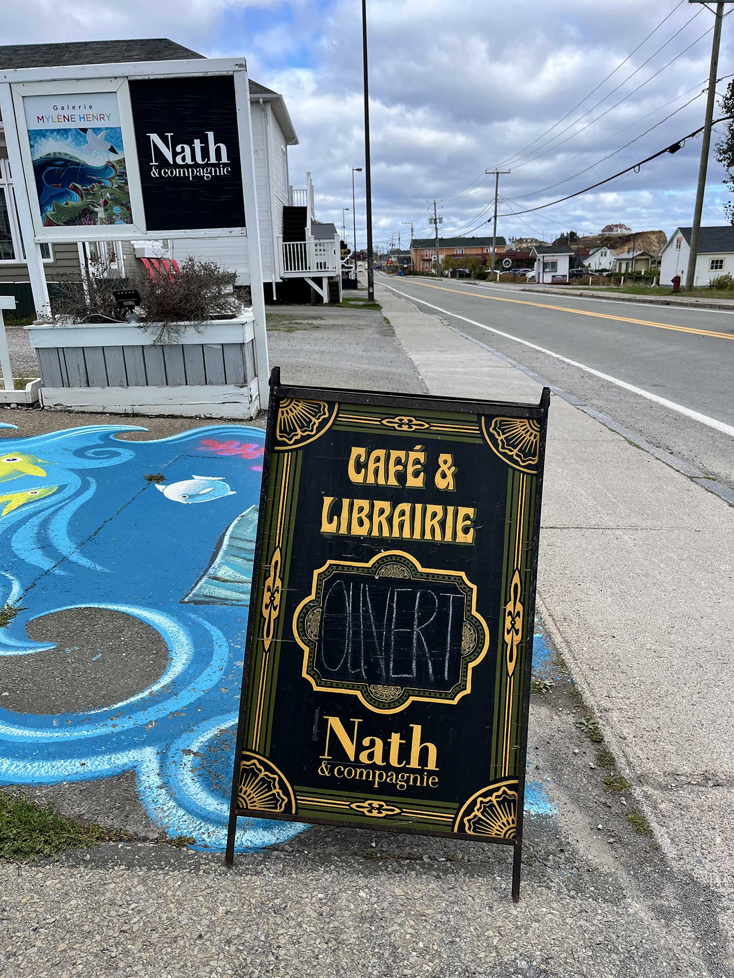 Il y a rapidement foule dans la petite librairie. Pourtant, la saison s’achève. Le calme revient. La librairie de Patrice et Nathalie est ouverte toute l’année. Celle de Gaspé est à une heure de route environ. Celle de New-Richmond, à 2,5 heures. Patrice nous dit que les gens de Chandler viennent chez lui et évidemment, ce nom m’emmène dans l’appartement mauve de six amis new-yorkais mais je ne peux pas une nouvelle fois m’égarer en terres fictionnelles.